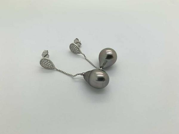 - Silver earrings with green-pink drop beads, grade C, 11mm and 11.8mm