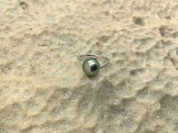 - Rhodium silver ring with zircons and a green pearl, C grade and 9.6mm. Size of the ring: 54