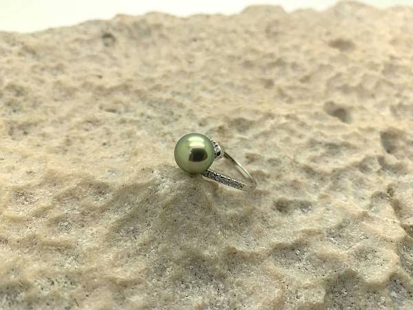 - Anillo de plata rodanizada con circonitas y una perla de oro, categoría B y 9,5mm.