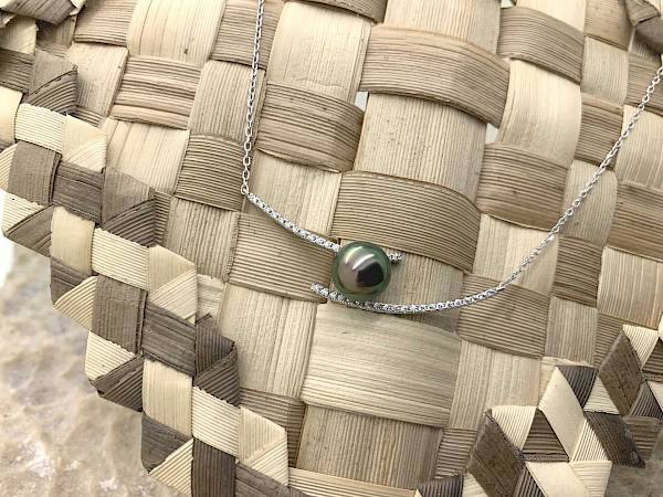 - Collar de plata con circonitas y una perla verde de categoría C y 8,8mm
